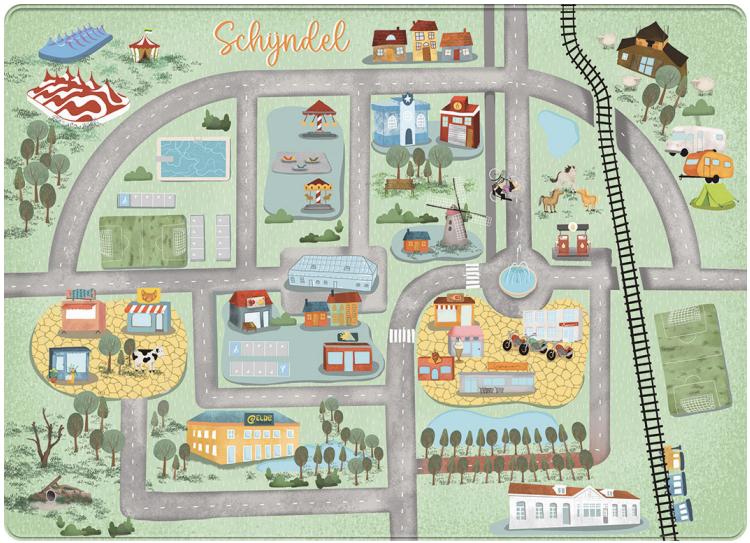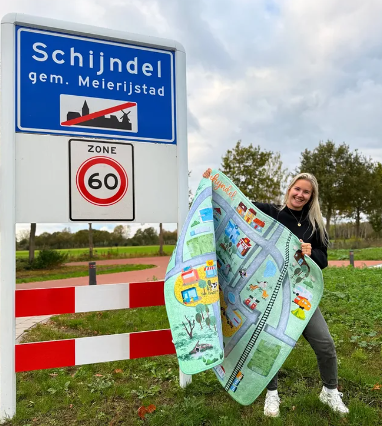 For Michelle from Schijndel, a charming village in the Netherlands, we created something truly special — a custom playmat inspired entirely by her own village.