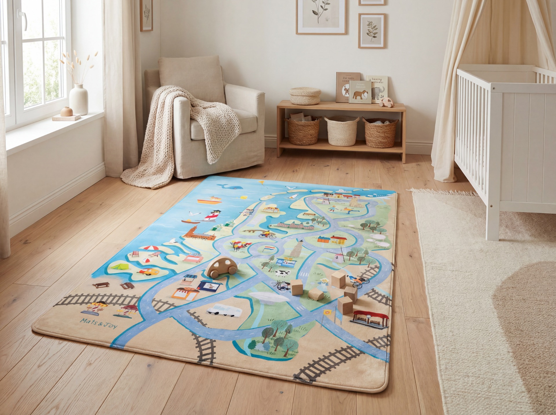 Een fluweelzachte speelmat waarop kinderen niet alleen heerlijk kunnen spelen, maar ook spelenderwijs het land leren kennen. Met herkenbare illustraties, een rustige en overzichtelijke opbouw en de premium kwaliteit waar Mats & Joy voor staat, is dit een speelmat die zowel kinderen als ouders meteen aanspreekt.