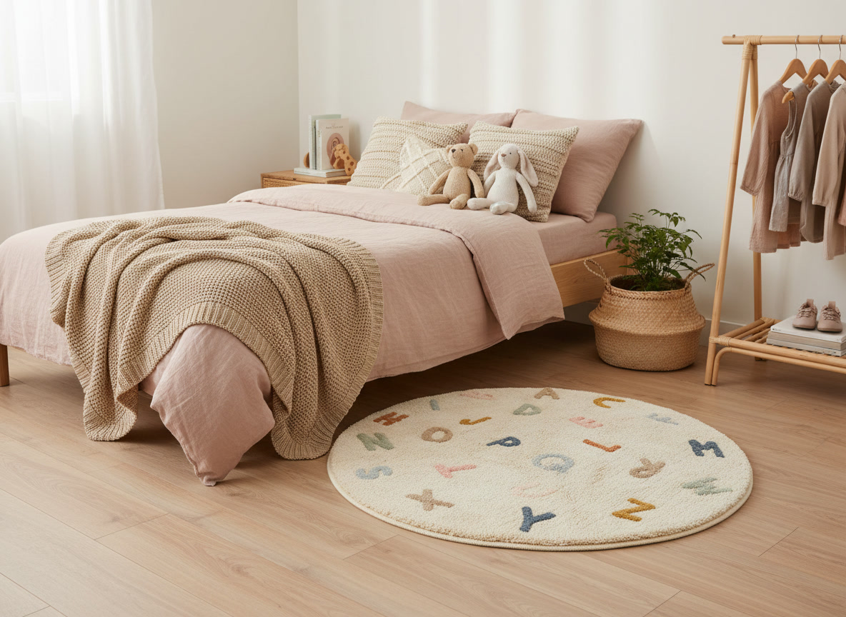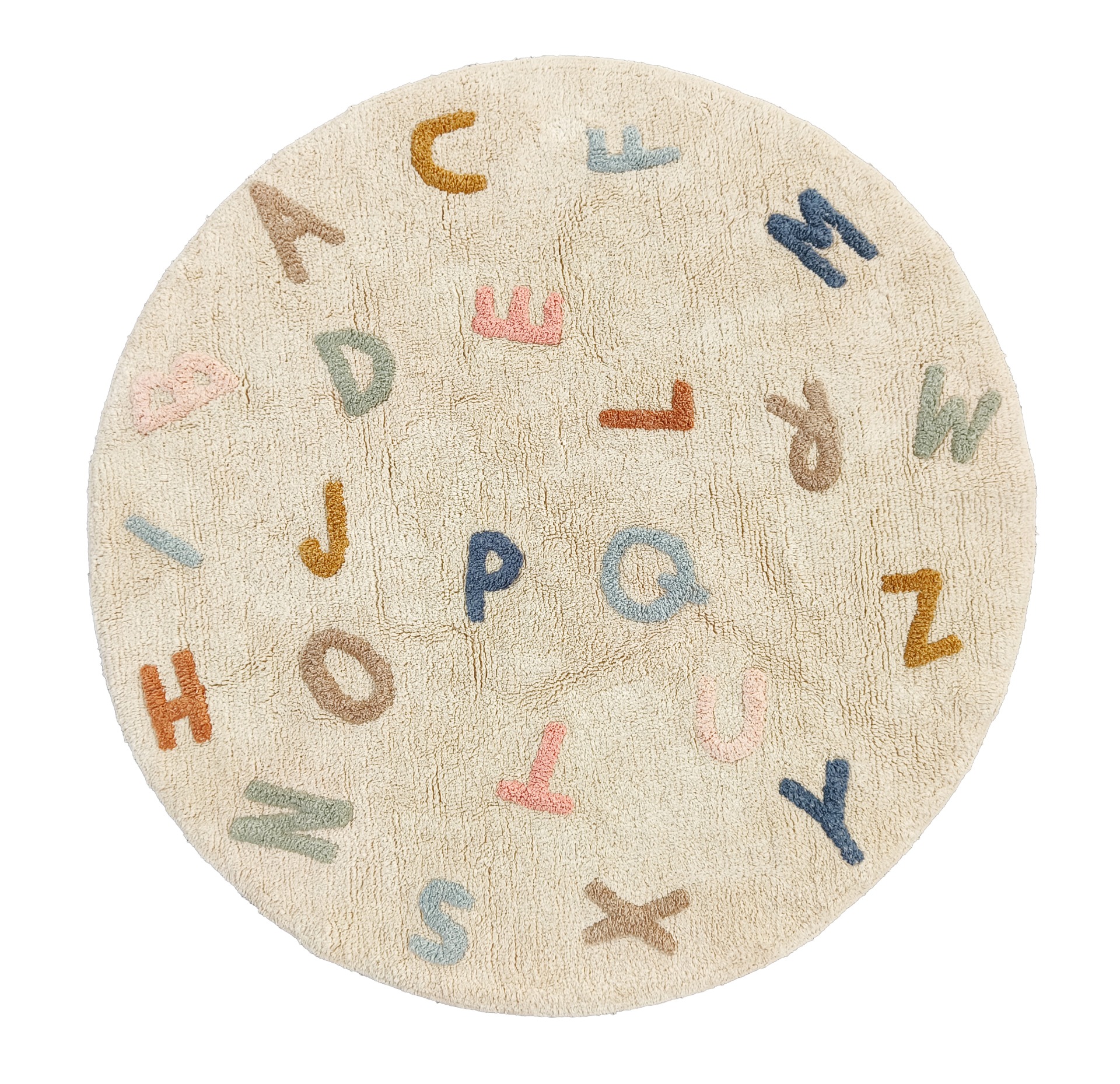 Breng speels leren en warmte samen in de kinderkamer met dit ronde ABC-vloerkleed. De zachte, rustige kleuren en speelse letters nodigen je kind uit om te ontdekken, spelen en ontspannen. Ideaal als decoratief accent in de speel- of leeshoek en perfect om de kamer een gezellige, educatieve touch te geven.