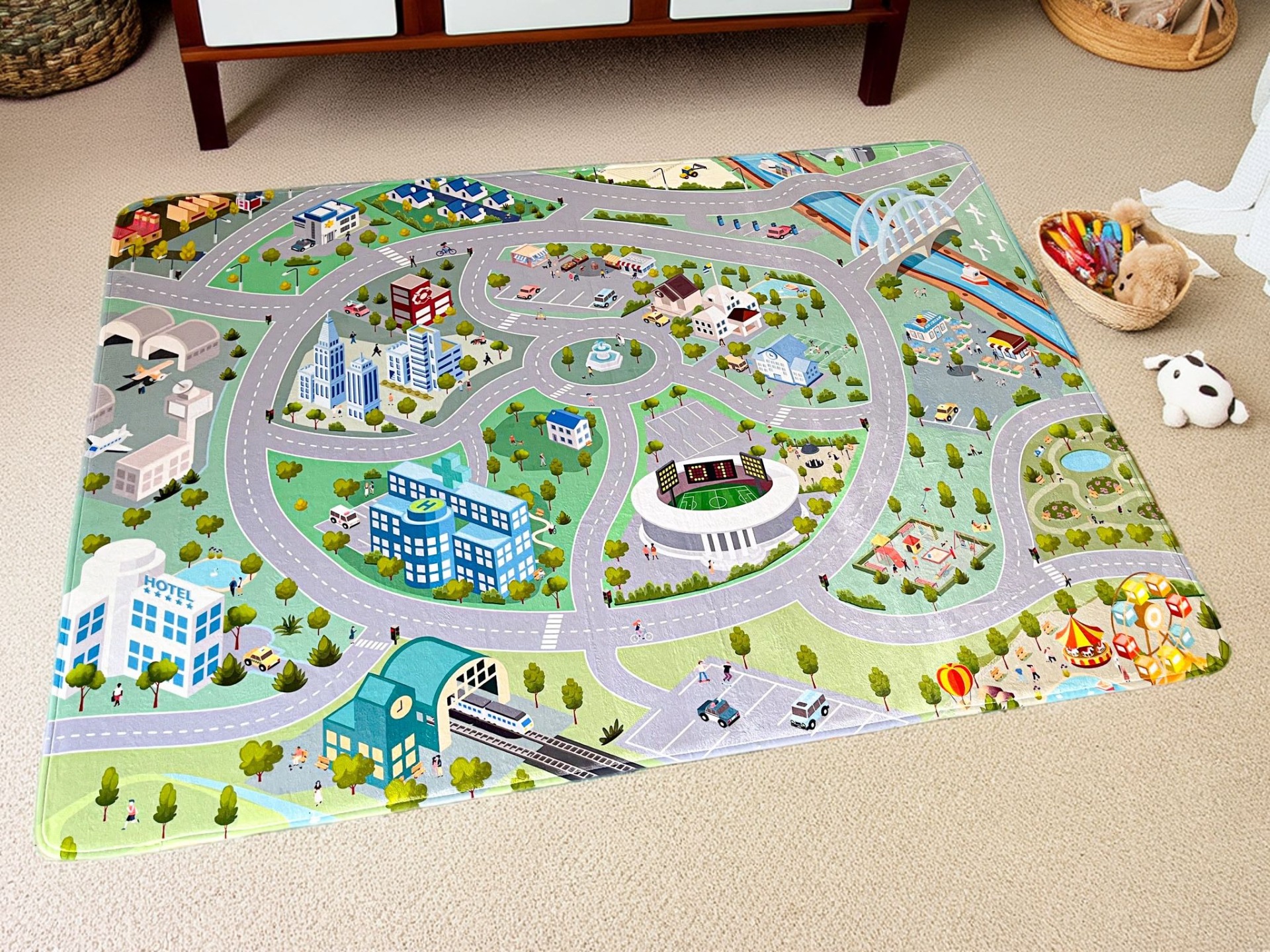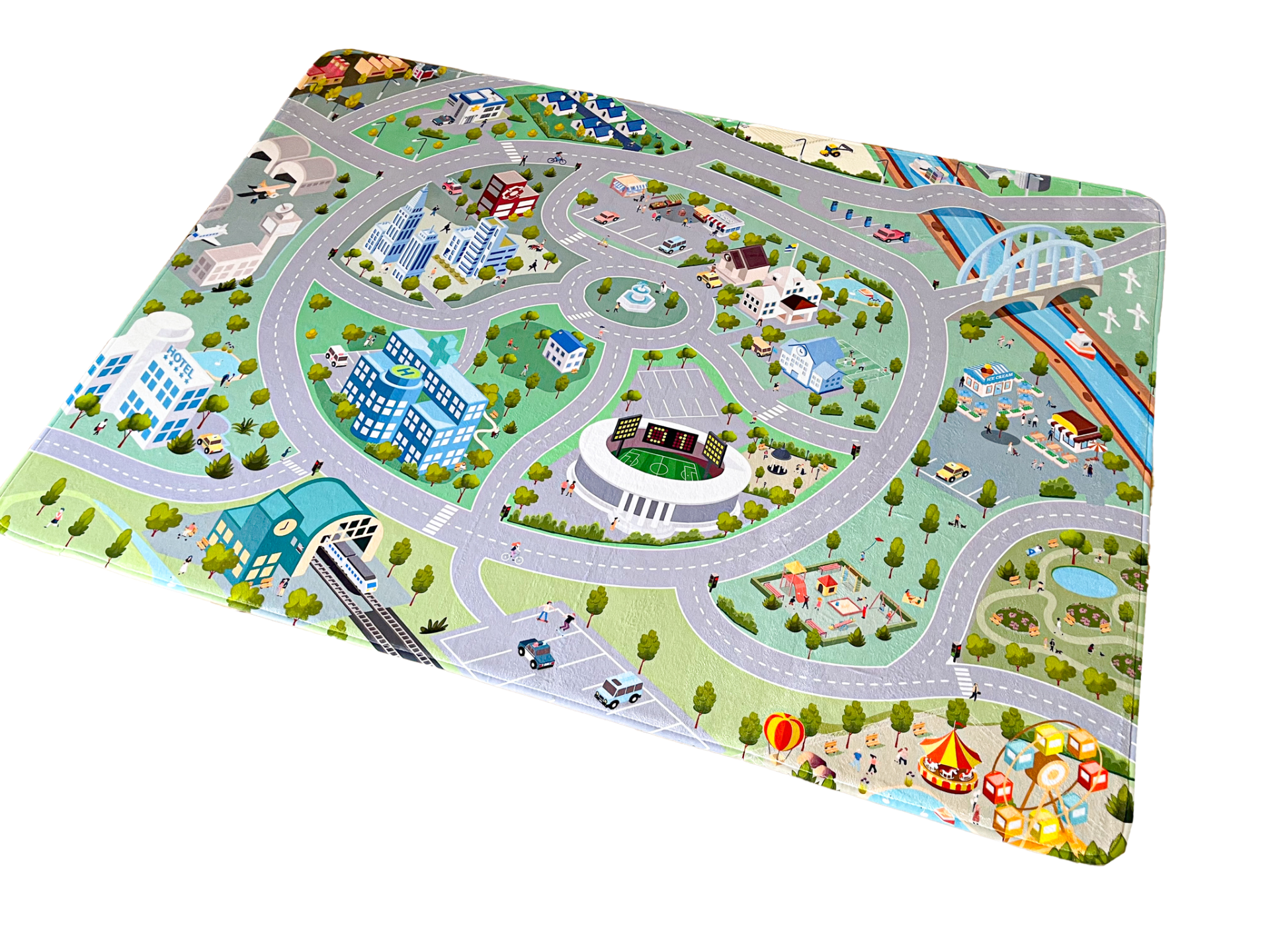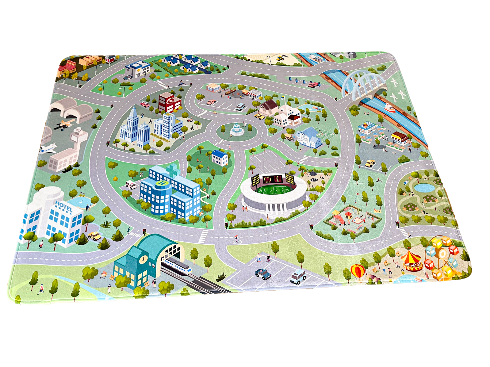Stap binnen in een wereld vol verbeelding met de Mats & Joy Auto Speelmat – Town Life! Dit extra grote auto speeltapijt (130x180 cm) is dé droomplek voor kleine ontdekkingsreizigers. Van drukke straten tot rustige parken – jouw kind beleeft de leukste avonturen vanuit zijn eigen wereldje.