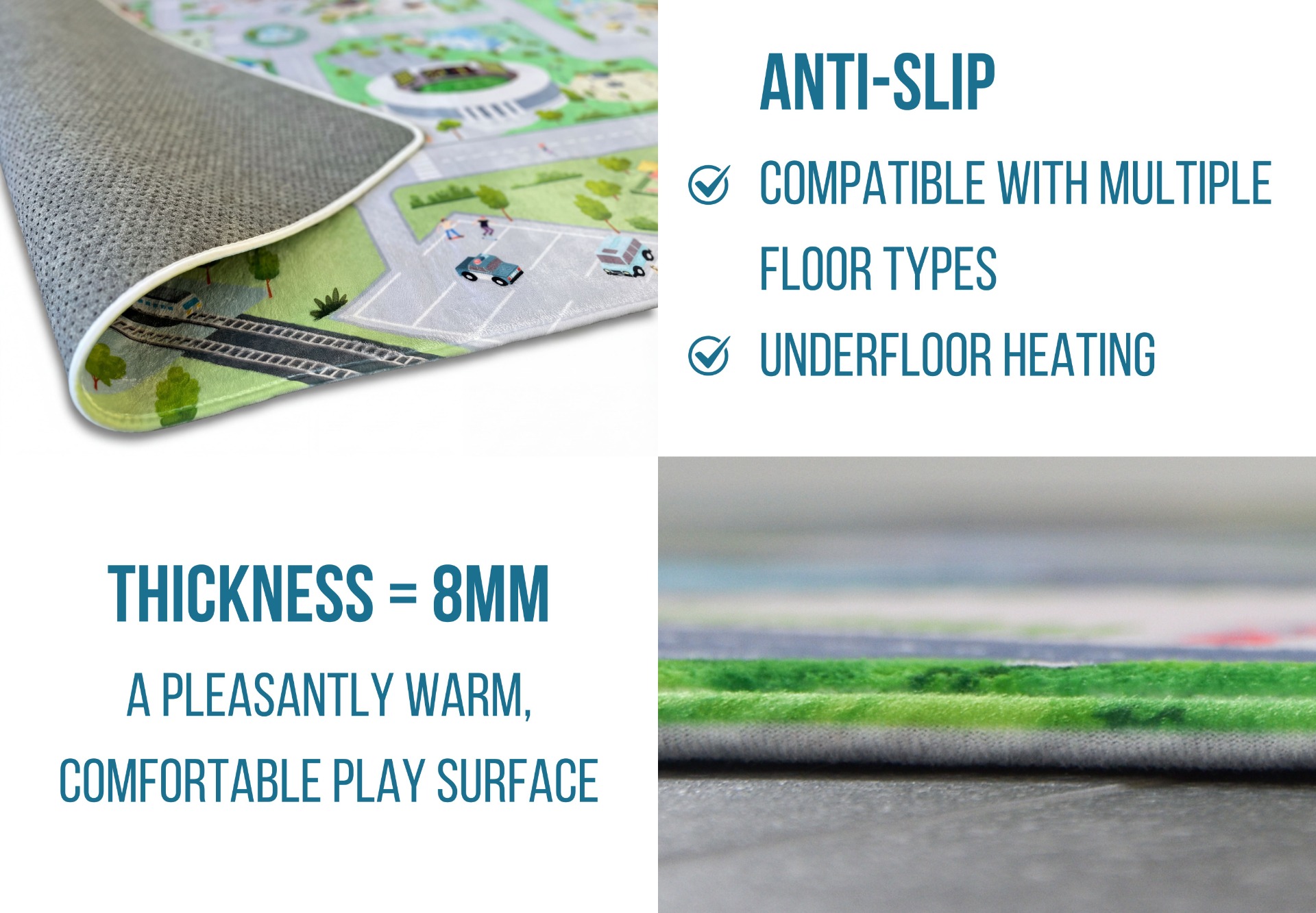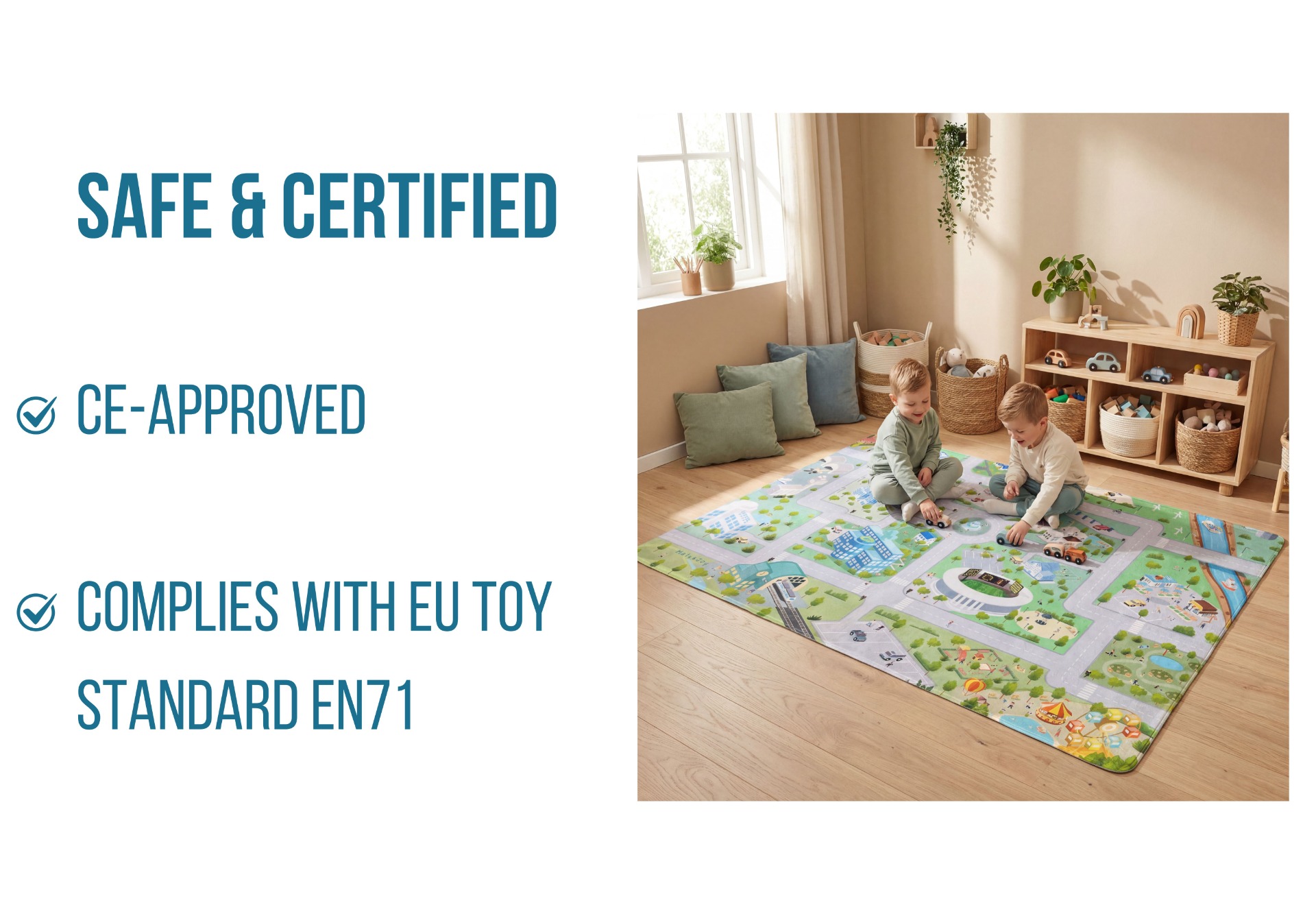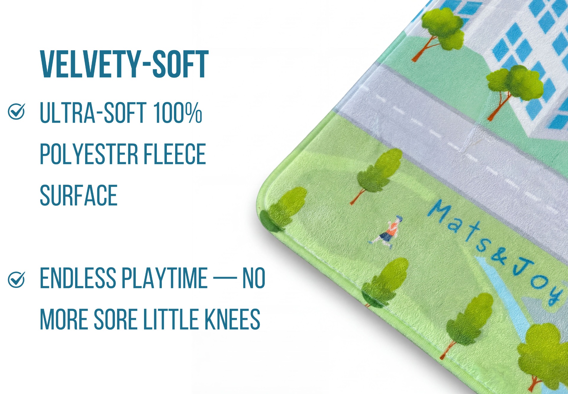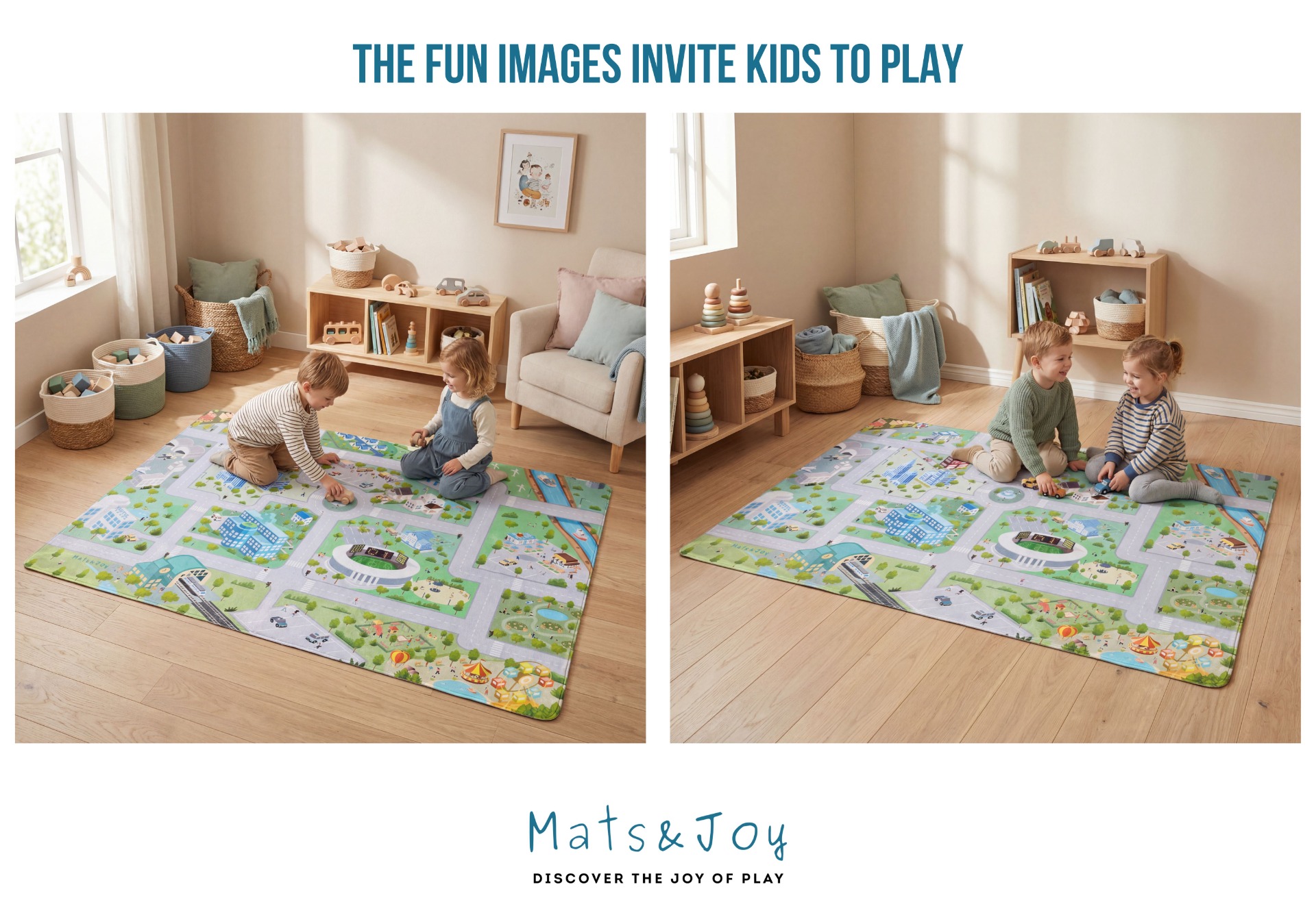 Stap binnen in een wereld vol verbeelding met de Mats & Joy Auto Speelmat – Town Square! Dit extra grote auto speeltapijt (130x180 cm) is dé droomplek voor kleine ontdekkingsreizigers. Van drukke straten tot rustige parken – jouw kind beleeft de leukste avonturen vanuit zijn eigen wereldje.