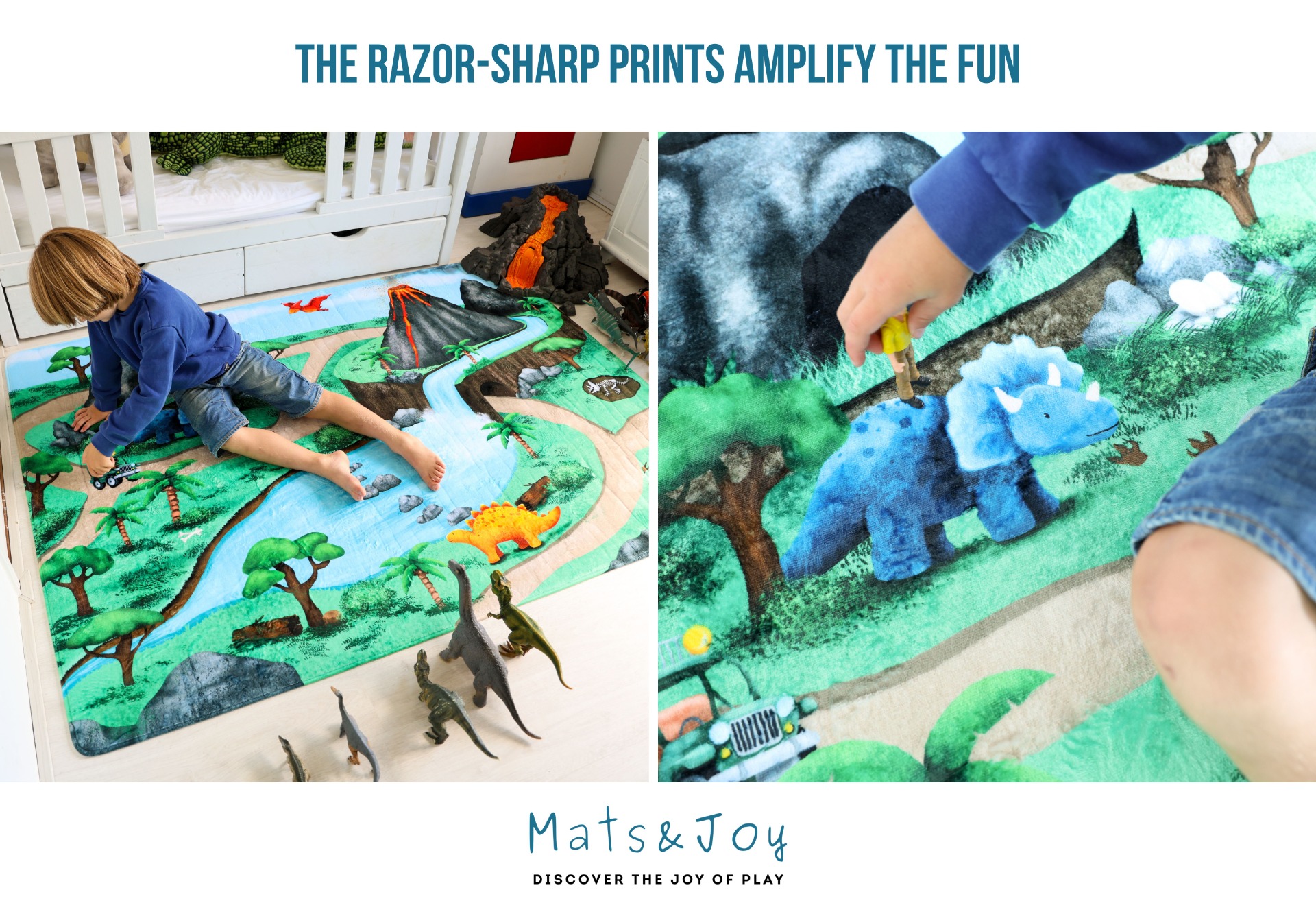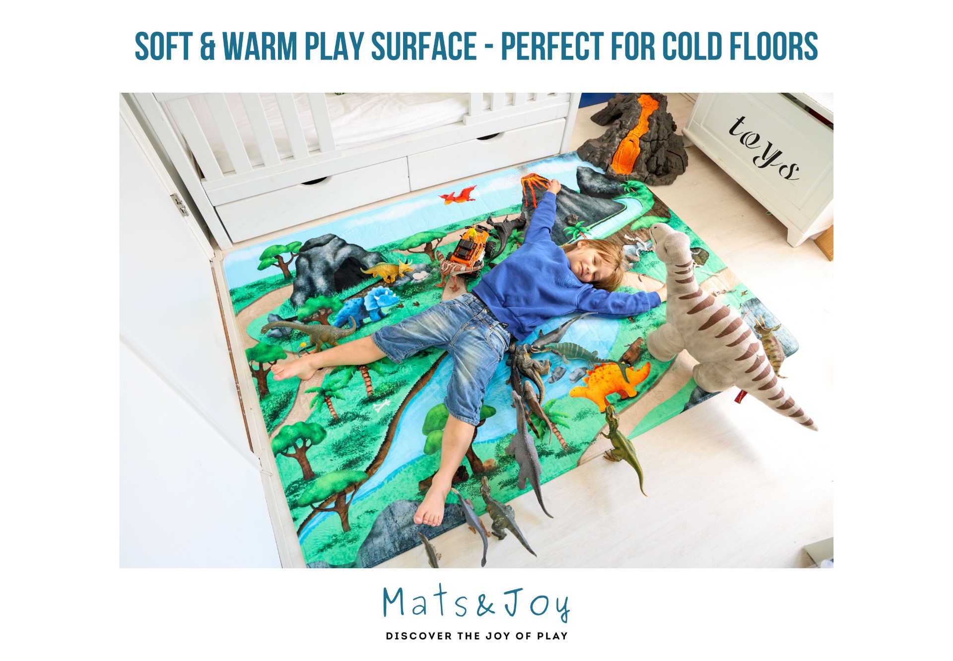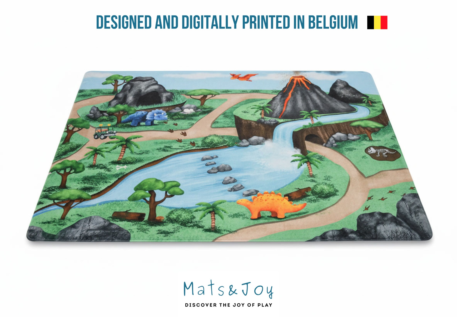 This adventurous kids playmat is perfect for toy cars, dinosaur play, toddler exploration, infant floor time and endless imaginative stories.
