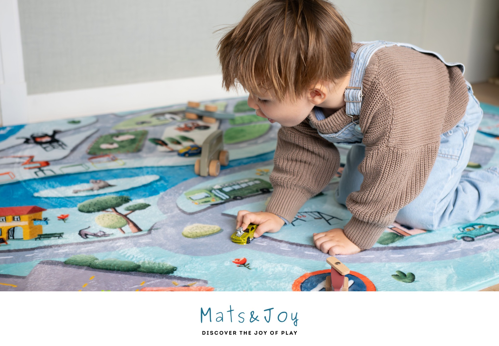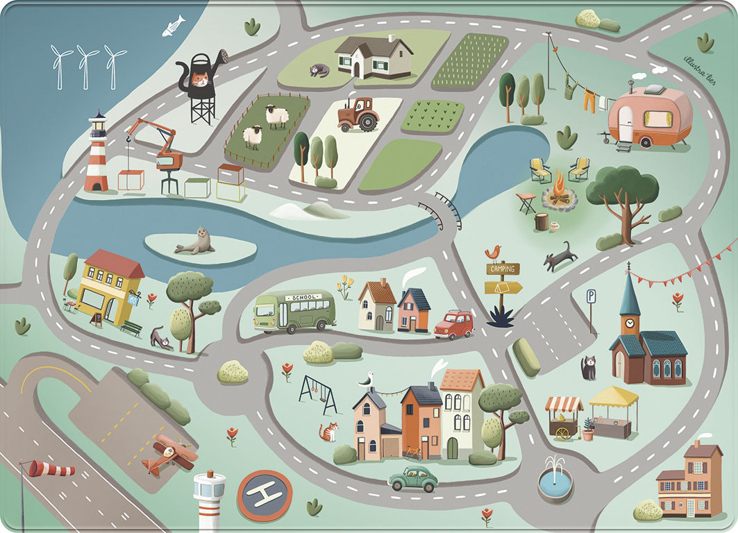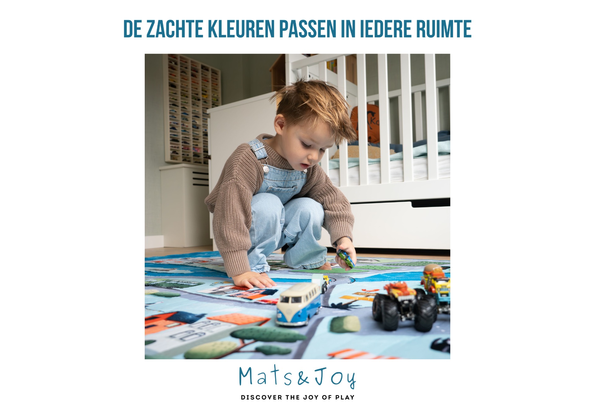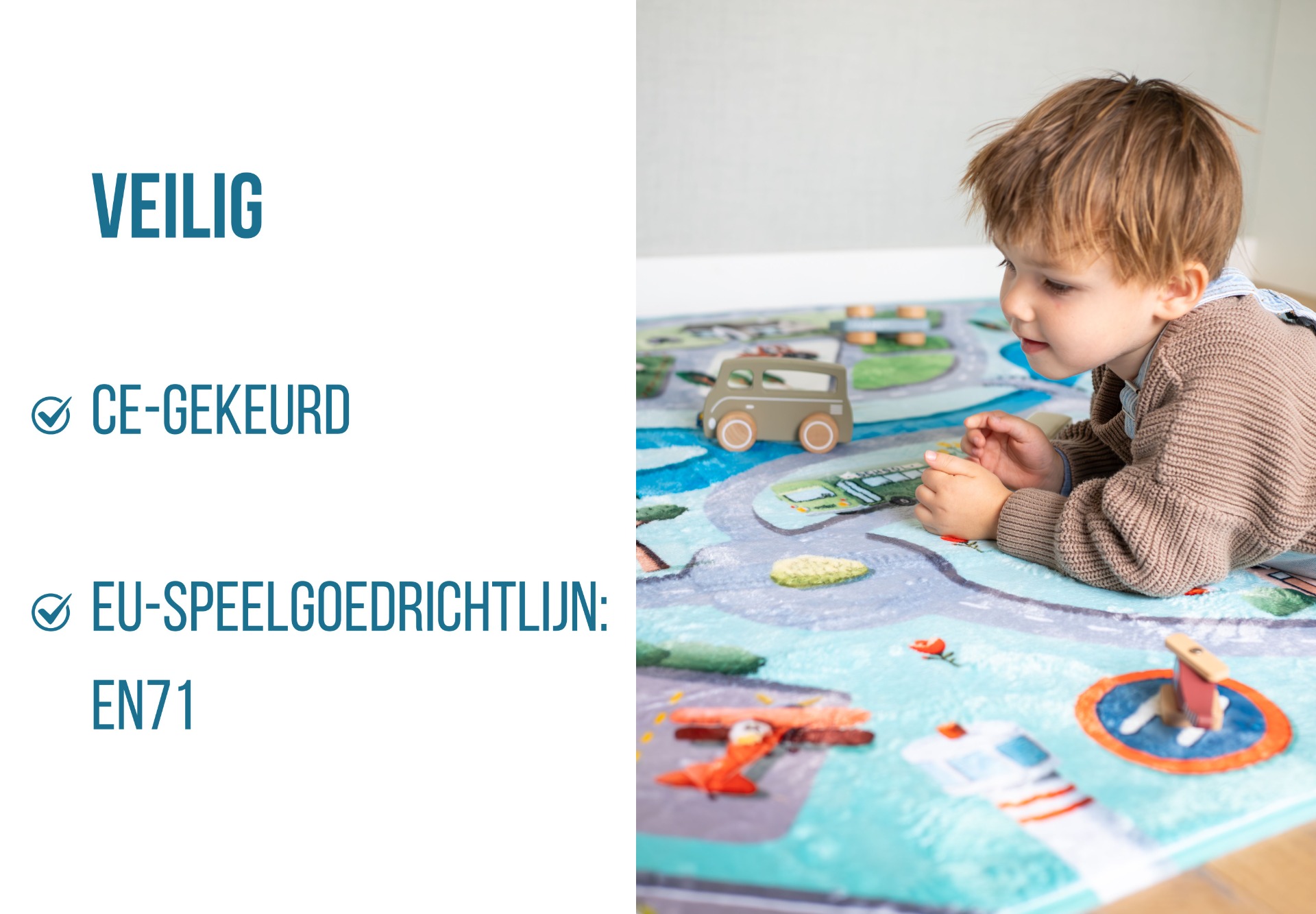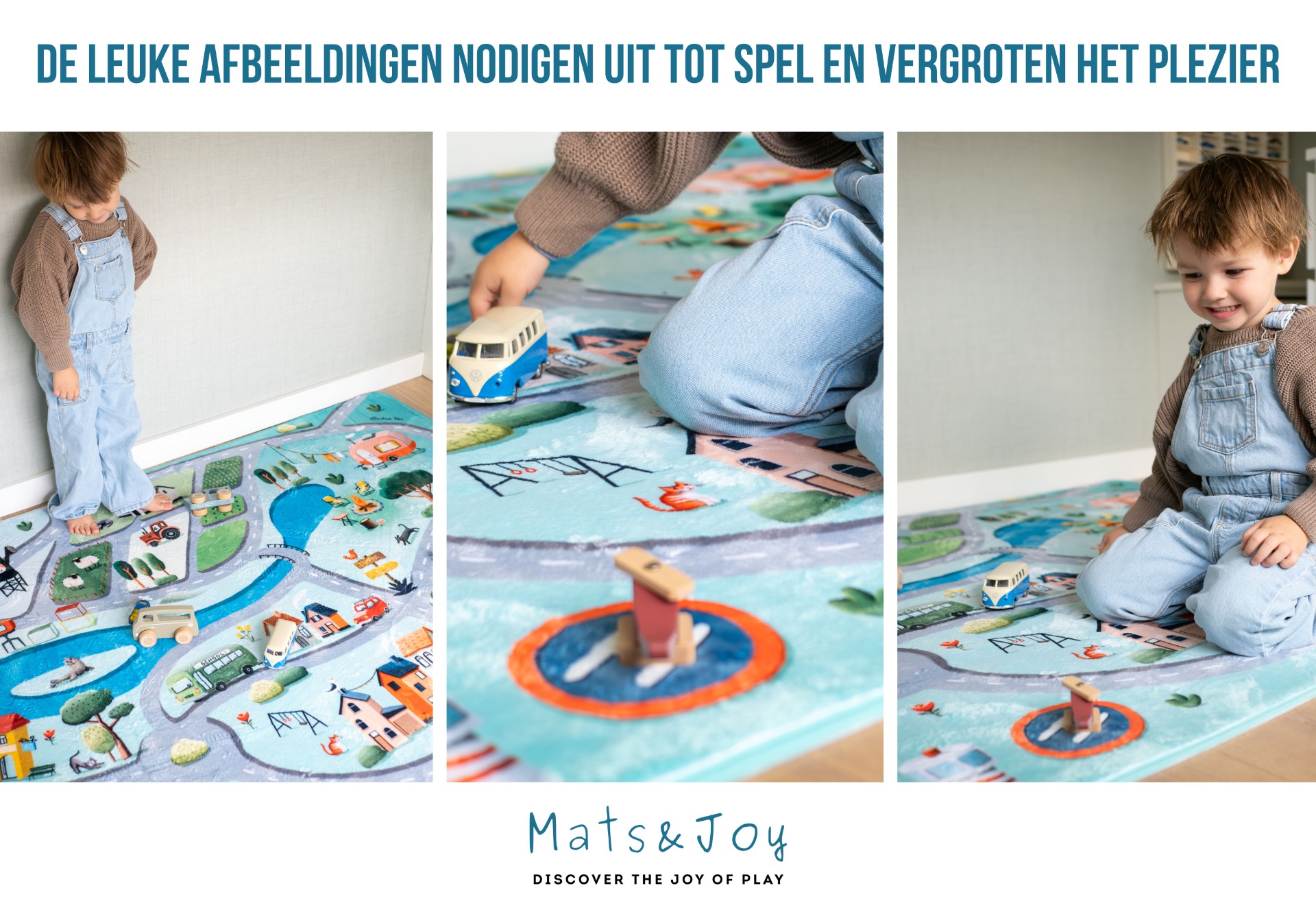 Roadtrip Autobaan Speelmat – Eindeloze avonturen wachten! Reis langs de kust, ontdek een boerderij, een gezellige camping, een luchthaven en meer! Zacht, stijlvol en perfect voor uren speelplezier. Maak je klaar voor de rit!